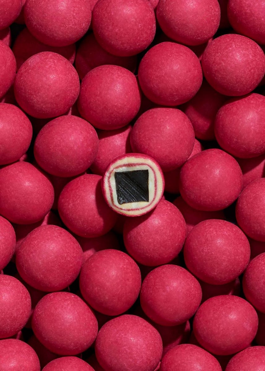 CRISPY RASPBERRY Flowback jossa kaksi herkullista palleroa. Maku vadelma jossa yhdistyy valkosuklaan makeus, raikas vadelma ja marjaisa mansikka. Jokainen lakritsipallo on peitetty valkosuklaalla ja vadelmahipuilla, ja viimeistelty rapealla punaisella sokerikuorella. Täydellisinen jaettavaksi, lahjaksi tai omaan nautiskeluun.